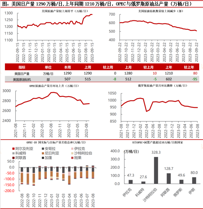 美国原油产量大约1290万桶/日;俄罗斯原油产量约950万桶/日;OPEC原油产量约2744万桶/日。