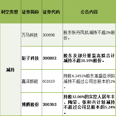 三、个股负面