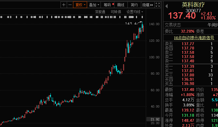 消费、科技领域的超级牛股也相对更多。剔除次新股后,英科医疗大涨715.03%位居涨幅榜首位,王府井、振德医疗等个股涨超4倍,未名医药、理邦仪器、凯撒文化等个股涨幅均超过两倍。
