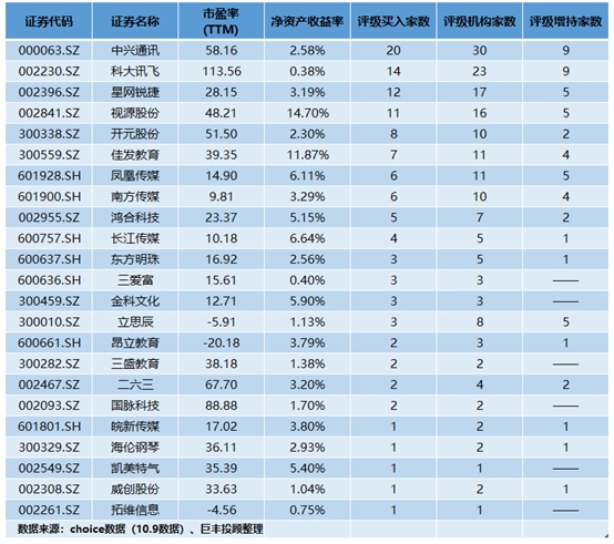 据choice数据统计,A股具备在线教育概念个股一共60家。截至10月9日数据,以目前最新一期机构评级买入家数、机构调研次数为基础从高到低排列如下,仅供参考: