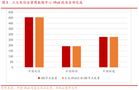 市场空间方面,从网络端IPV6渗透率看,运营商已基本完成IPV6改造,后续投入预计不会比18-19年更大。但是第三方IDC、CDN(分发网络)及云计算基础设施IPV6的双栈化改造渗透率还不高,未来仍有较大提升空间。