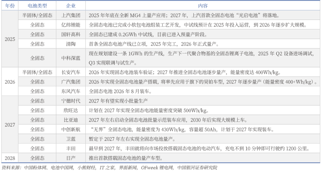 部分企业固态电池规划 |