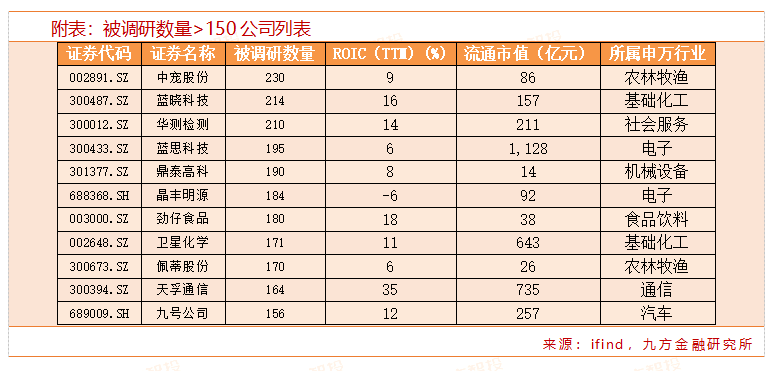聚焦本周机构调研的公司,中宠股份调研总数居首,有230家机构参与;随后为蓝晓科技、华测检测,均有超200家机构参与调研。