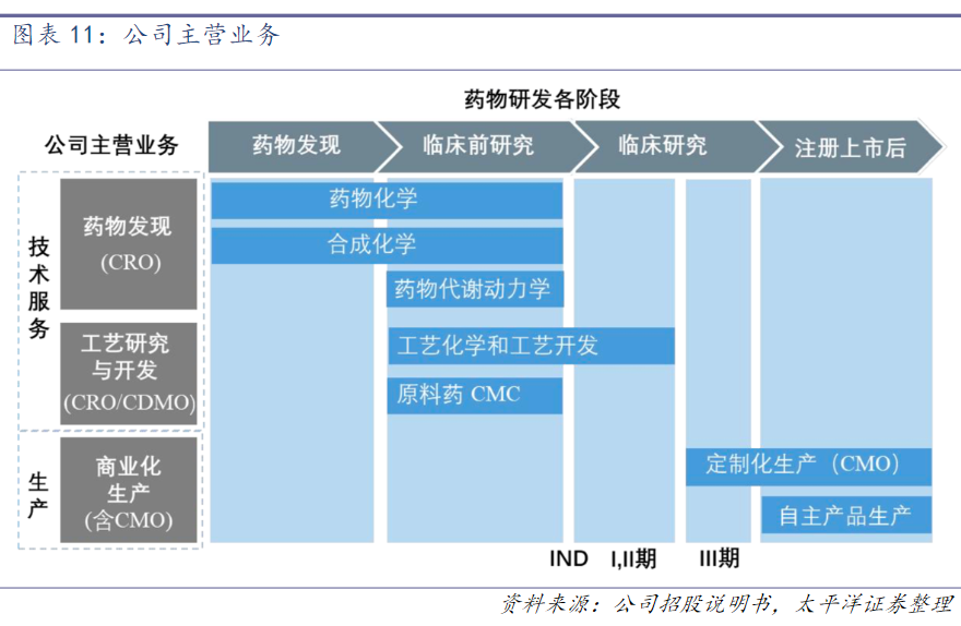 研报菌划重点:公司目前前端业务主要分为药物发现CRO和工艺研究与开发CRO、CDMO。
