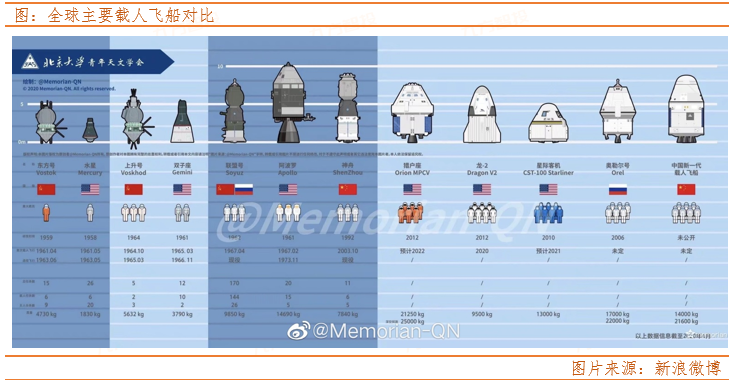 其次,我国新一代载人飞船成功跻身全球第一流行列。主要技术性能指标对比显示,新一代载人飞船的最大载员人数已经可以比肩航天飞机,达到国际顶尖水平,而飞船的整体质量也位居全球前列。同时,在设计理念方面,新一代载人飞船同样具备了多功能特性与重复使用能力,飞船采用的我国自主研发新型轻质耐烧蚀碳基防热材料设计性能甚至已经超过美国同类顶尖产品。