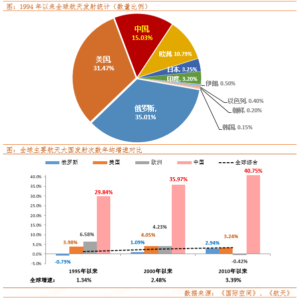 在此之前中国航天发射次数基本维持在全球总数的10%以下;自此之后,中国航天成功超过欧洲航天局,跻身全球前三,直到2015年结束。