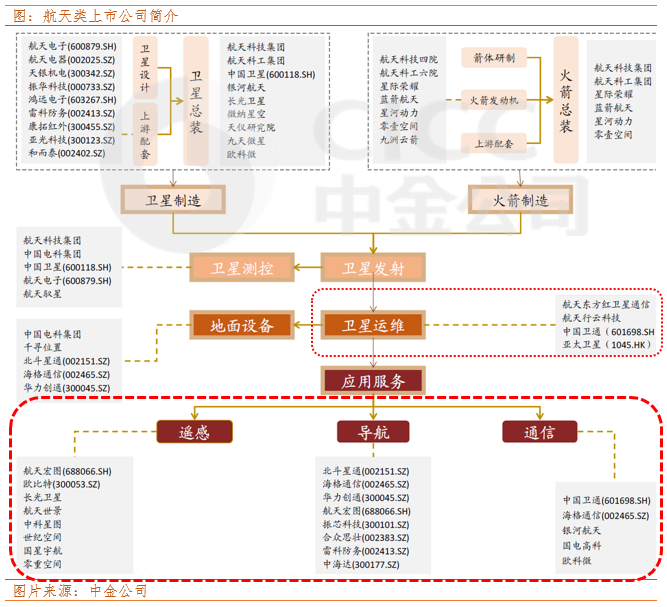 因此,作为所有中下游产品与服务基础的天基通信大概率将成为价值链中的核心。在此过程中,拥有核心通信协议/设备/标准/系统垄断性的优势企业以及具备技术衍生创新开发能力的平台龙头或将持续直接受益。
