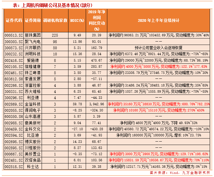 上周(2020.7.18——2020.7.24)共有254家机构出动调研了35家上市公司,环比趋向集中,中小创依旧是焦点市场。