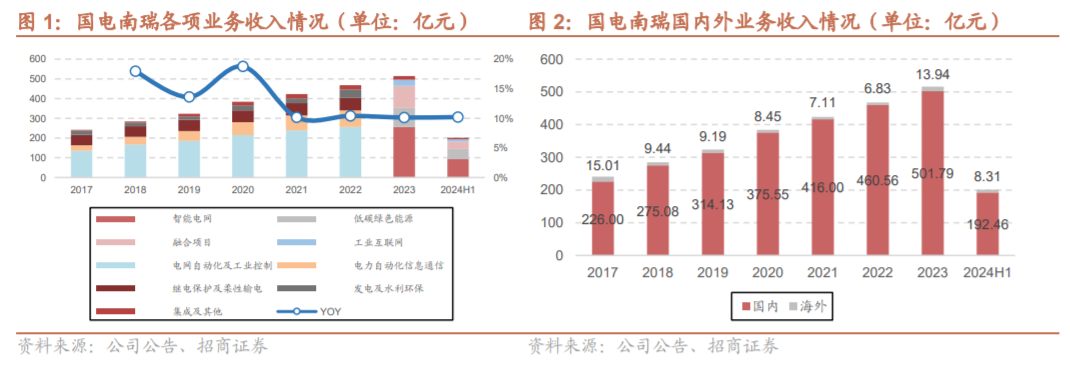 公司在智能电网领域处于领先地位。公司是智能电网技术、产品及一体化整体解决方案供应商,综合实力国际领先,处于市场龙头地位。主要产品包括电网安全稳定分析与控制、电网调度自动化、电力市场、新能源并网控制、新一代集控、新一代自主可控变电站监控、继电保护、变电站智能运检、直流输电系统、柔性交流输电系统、源网荷储协同控制、输变电在线监测、智慧配电网统一平台、配电网中低压柔性互联、新一代智能电表、新型采集终端、需求侧响应、虚拟电厂、超级充电桩、车网互动等。其中,智能电网主配网调度及监控自动化系统、柔性直流换流阀、电力控制保护设备入选国家级制造业单项冠军。