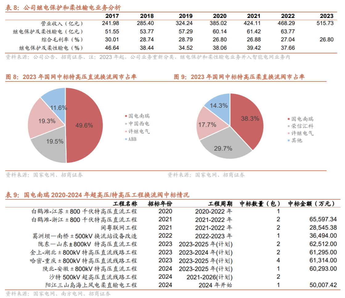 3)继电保护及柔性直流输电:南瑞工程技术有限公司、南京南瑞继保工程技术有限公司;