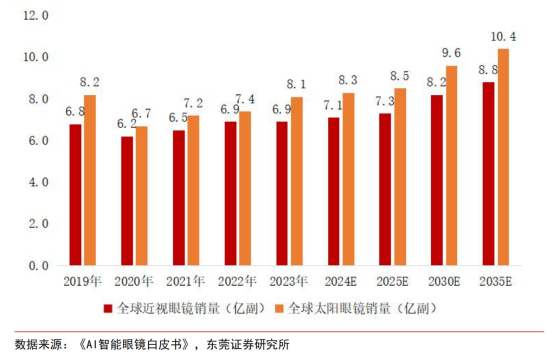 ①终端密集推出AI眼镜产品,传统眼镜市场稳健增长,为AI眼镜提供庞大空间;