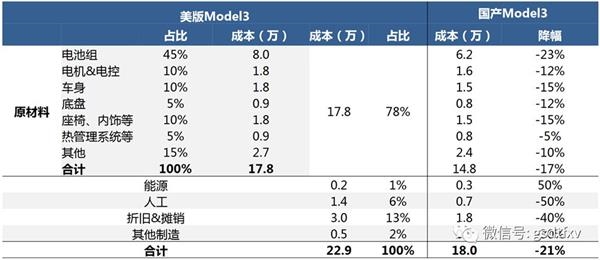 未来,若国产Model3进一步推进降价,则有望对BBA传统的中低端车和国内同价位电动车形成较高价格优势。实际情况是,Model3未来确实具备可观的降价空间。
