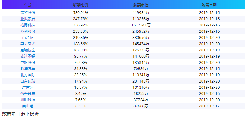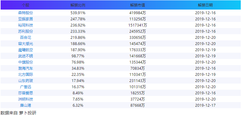 根据我们的回测, 股票在解禁实际发生前20个交易日有非常显著的下跌, 所以我们给出未来第5周(约21-25个交易日)即将解禁的高风险个股列表。