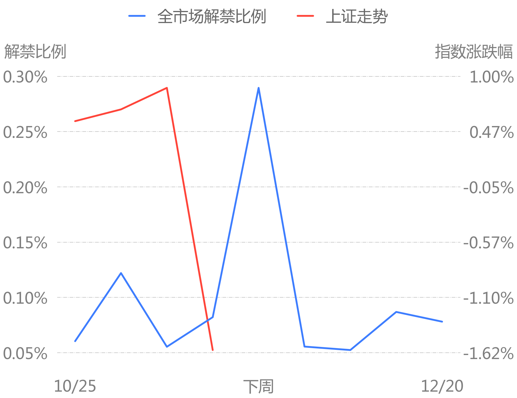 下周全A股解禁市值环比本周大幅增加249.90%,主板、中小板、创业板解禁比例分别为0.292%、0.343%和0.201%。