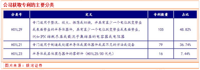 公司在分类为H01L29、H01L21的专利占据了总专利数量中的85%,而这两个专利基本都是集中在半导体功率器件结构和工艺方面。截至公司21年年报,公司累计获取135个专利,其中发明专利36个,当年新增产品近300多款,21年新增申请发明专利21个,新增获得9个。