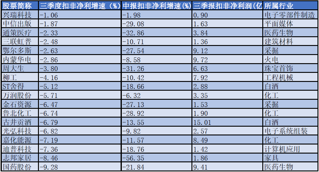 3、三季度扣非净利润同比增长率>中报扣非净利润同比增长率
