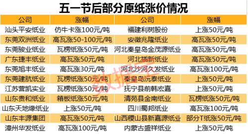 自5月6日起,国废价格普遍上涨20-50元/吨;5月7日,包括玖龙纸业在内的多家纸厂宣布纸价上涨50-100元/吨。与此同时,铜版纸经销商纷纷发布涨价函,每吨上涨200元。