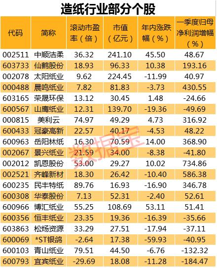 纸业上市公司盈利回落