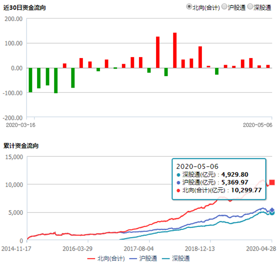 北向资金:5月6日,北上资金昨日净流入11.4亿。贵州茅台净买入5.74亿,恒瑞医药净买入3.05亿,药明康德净买入2.17亿,海康威视净买入0.76亿。