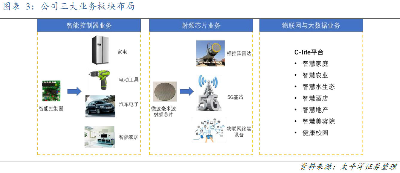 公司子公司铖昌科技是国内毫米波射频芯片领域唯一一家承担国家重大型号量产任务的民营企业。公司研发生产体系完善,拥有完备的军工科研生产资质,产品广泛应用于军工、5G、物联网等领域。