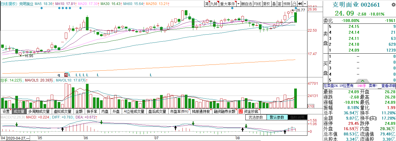 股市有云,涨时重势、跌时重质,而部分持有绩优股的股友这几天的日子也不好过。业绩利好公告,反被主力资金利用,成了利好出尽。克明面业中报业绩大增148%,昨天却也惨遭一记结结实实的跌停。