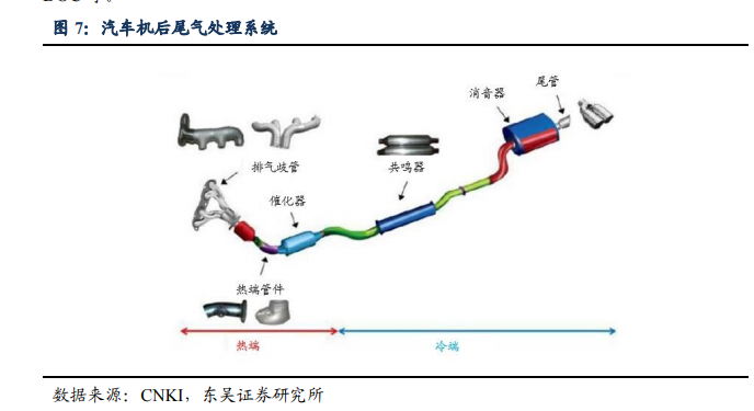 汽车机后尾气处理系统是由热端管件、催化器、共鸣器、消音器等组成,其中催化器是机后尾气处理系统的核心要件。汽车尾气净化催化器由催化剂和金属外壳构成,催化剂作为其中核心,主要包括以下四部分: