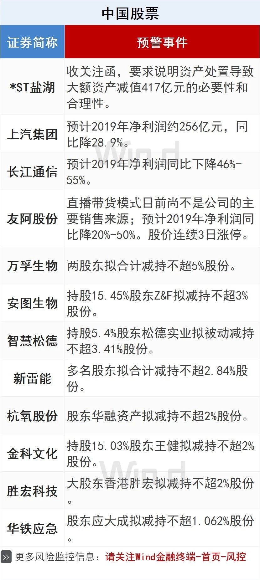 每日投资预警 | 监管关注*ST盐湖、多家公司股东减持