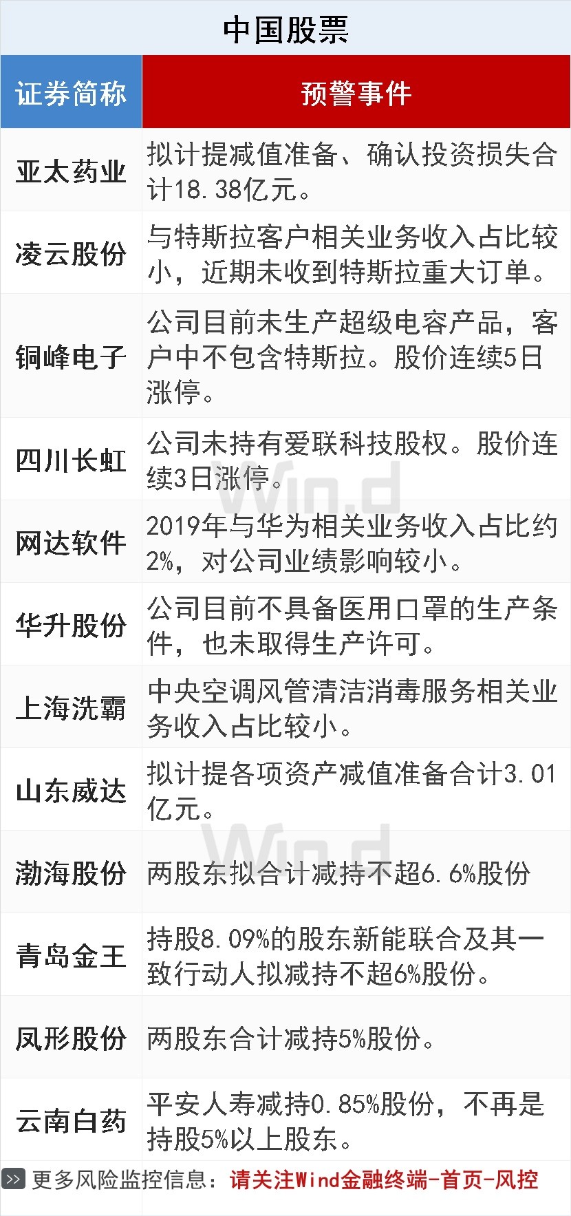 每日投资预警 | 四川长虹、亚太药业、凌云股份