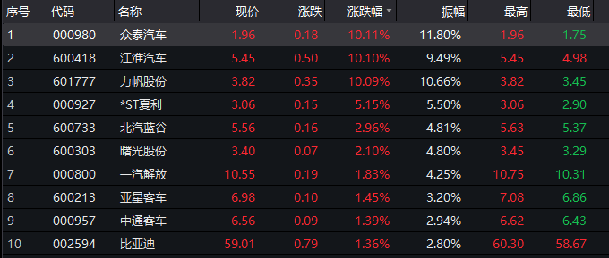 今日汽车板块整体表现突出,众泰汽车、江淮汽车、力帆股份等涨停。