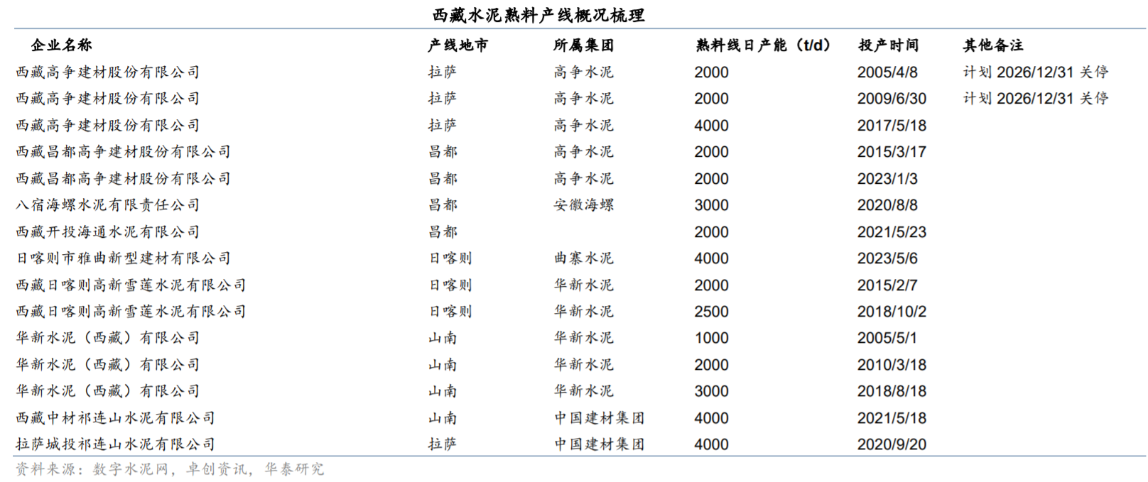 华新水泥(藏区年产能335 万吨,市占率26%,公司总销量约5800万吨)在藏区亦有产能布局,但弹性角度看影响较弱。