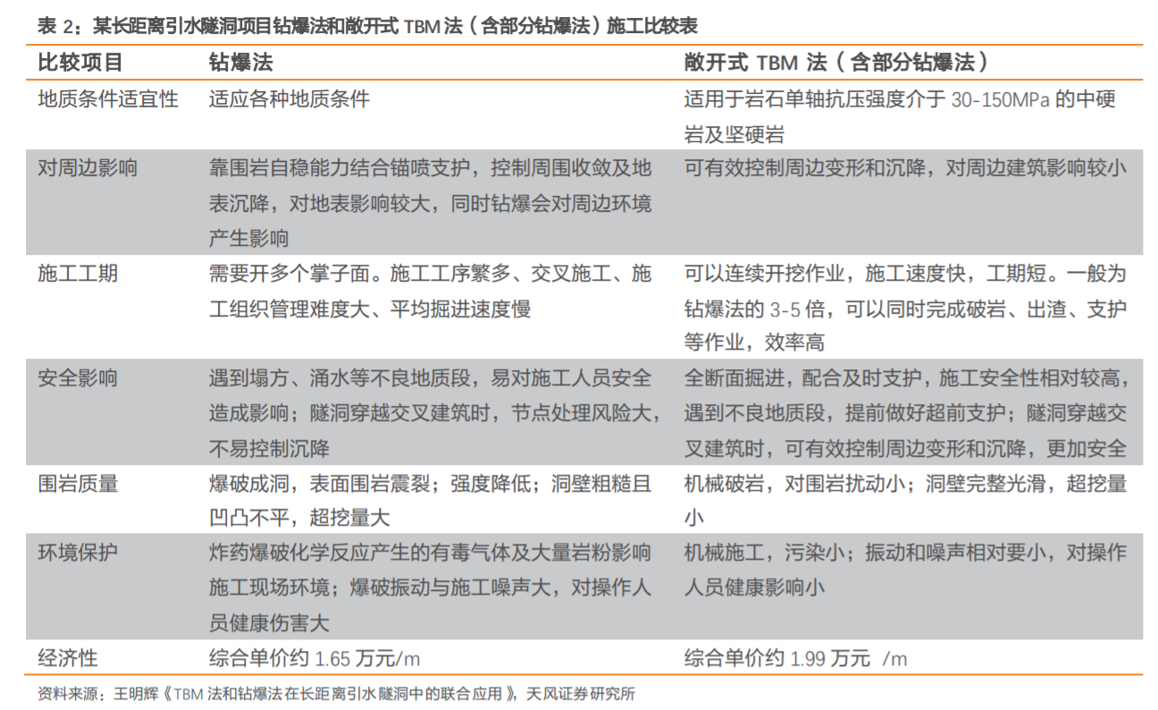 在喜马拉雅山脉地区开山凿洞、引水造渠的难度可想而知,离不开挖掘隧道的“杀手锏”——TBM设备。过去,我国TBM大量依靠进口整机或技术。此前,除德国维尔特公司外,德国海瑞克和美国罗宾斯公司是世界掌握TBM技术和生产能力的三大企业。当前国内盾构机和TBM市场以大型国有企业为主,民营企业则占据了顶管机市场的主要份额,形成了国有企业和民营企业错位竞争、协调发展的市场格局。根据制造业排名数据库统计,2023年在盾构机械中国市场排名中,中铁工业和铁建重工的市占率分别为39.4%、33.8%。锦屏二级水电站总装机容量为480万千瓦,其1#、3#引水隧洞分别使用了由美国罗宾斯公司和德国海瑞克公司生产的敞开式硬岩掘进机,我们以此估计雅鲁藏布江下游水电工程对TBM需求约为25台,TBM价格极高,按照每台造价2-3亿元人民币计算,雅鲁藏布江下游水电工程中TBM设备投资大约50-75亿元。
