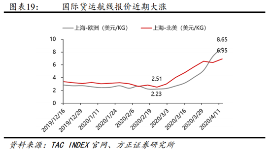 相对平稳的需求下,此次运价上涨本质上是由供给阶段性出清所带来的。受疫情影响,民航局出台“五个一”政策(一家航空公司在一个国家保留一条航线,一周至多有一个航班),短期对航空货运的供给冲击较大。