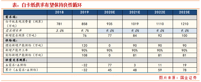 今年9月,新《固废法》开始实施,叠加今年新“限塑令”政策(《关于进一步加强塑料污染治理的意见》)出台,预计未来塑料制品的使用会大幅减少,或加快催生白卡纸对不可降解塑料的需求替代。