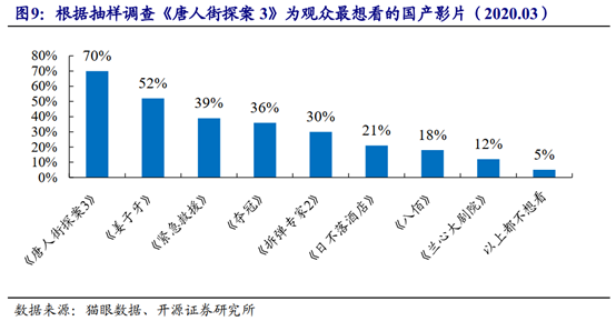 另外,除了院线公司之外,拥有优质影片库存丰富的公司,也将享受影院复业及行业复苏带来的收益。开源证券认为,影院复业后的半年内上映影片或将以库存影片为主,《唐人街探案3》、《姜子牙》、《夺冠》等头部影片或将在影院复业后收获高票房,为所属制片及发行公司带来业绩修复。