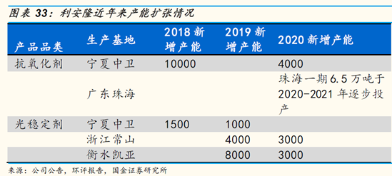 公司主要下游客户是烯烃行业及其下游相关改性塑料、化纤、涂料等高分子材料行业,2019年-2022年,我国烯烃行业处于扩产周期,将分别带动抗氧化剂和光稳定剂新增需求,将带动公司产品需求增长。