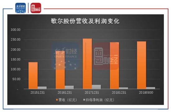 2019年,歌尔股份业绩恢复增长,前三季度营收241.34亿元,归母净利润9.85亿元,同比增速分别为56.23%及15.04%。