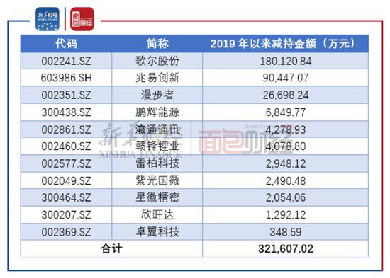 数据显示,歌尔股份重要股东的减持集中在2019年11月份及12月份。
