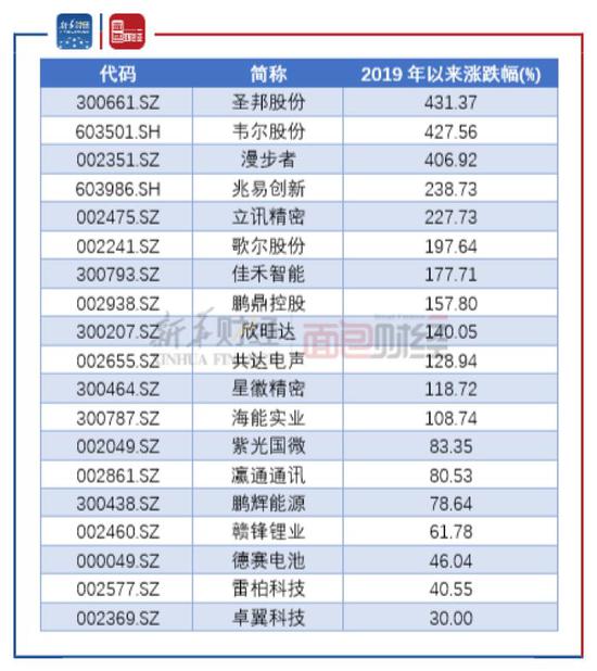 从指数成分股来看,19只个股2019年以来涨幅均在30%以上,其中12家公司股价实现翻倍,圣邦股份、韦尔股份及漫步者三家表现最为亮眼,涨幅均在4倍以上。不过,部分TWS耳机概念股的股价近期有所调整,龙头股之一漫步者更是在12月30日封于跌停。