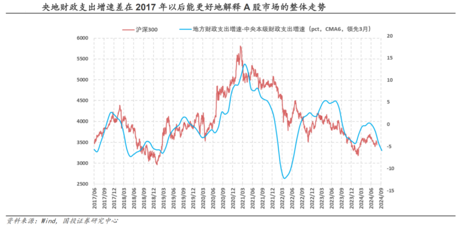 央地财政支出增速差在2017年以后能更好地解释A股市场的整体走势。