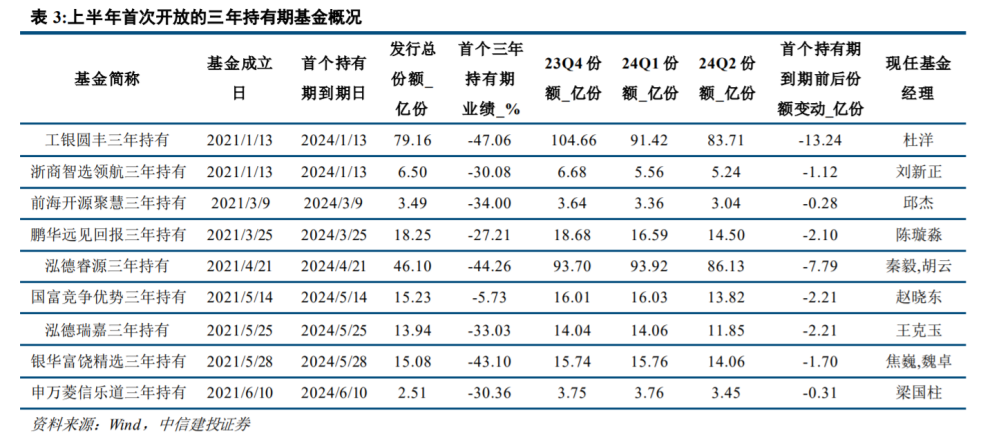 回顾今年上半年已首次开放赎回的三年持有期主动权益基金,同样地,多数在持有期内回撤较大;但是和首个持有期到期之前一个季度末相比,净赎回份额整体可控,多数在10%左右,最高约16%。因此,参考来看,当前市场环境下赎回的压力或许较为可控,但未来如果市场有阶段性反弹,有可能出现一定抛压。
