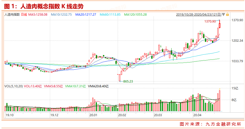 人造肉概念指数再创新高,延续强势,概念股大康农业、双塔食品、海欣食品、京粮控股等收获颇丰。