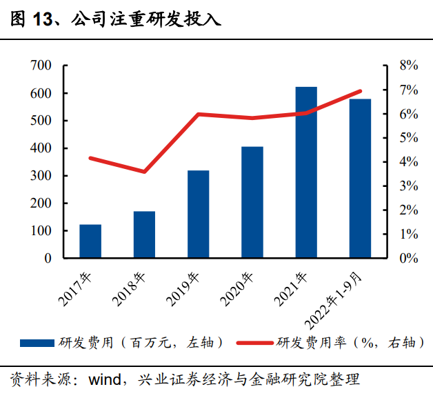 公司研发费用率逐年提高,加大在动力和储能电池的投入,注重技术和产品开发,研发费用率逐年提升,从2017年的4.16%提高到了2022年前三季度的6.95%,主要核心技术共有17项,涉及消费类锂电池、笔记本电脑和手机电 池、穿戴类电池、动力类锂电池、工业无人机电池、混合动力汽车电池、汽车启停电池等。