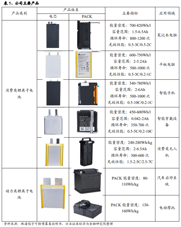 公司以消费类锂电产品为主,同时布局动力和储能,主要从事消费类聚合物软包锂离子电池的研发、生产及销售,同时布局动力和储能锂离子电池,主要产品应用于笔记本电脑、平板电脑、智能手机、智能穿戴、无人机、汽车启停系统及电动摩托等领域。目前公司客户主要包括笔记本电脑和平板电脑厂商、手机厂商以及无人机、智能穿戴厂商。