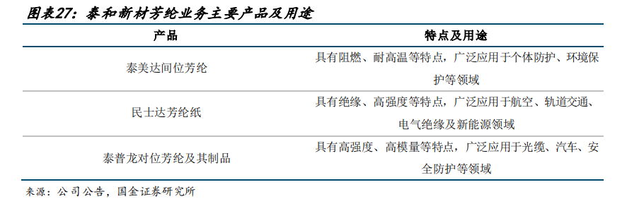 另外,泰和新材是国产化芳纶替代领军者。作为全球三大芳纶生产企业之一,据泰和新材,公司在国内率先实现间位芳纶和对位芳纶产业化,现有产能分别是11000吨和6000吨,产量最大且长期居于国内龙头地位。