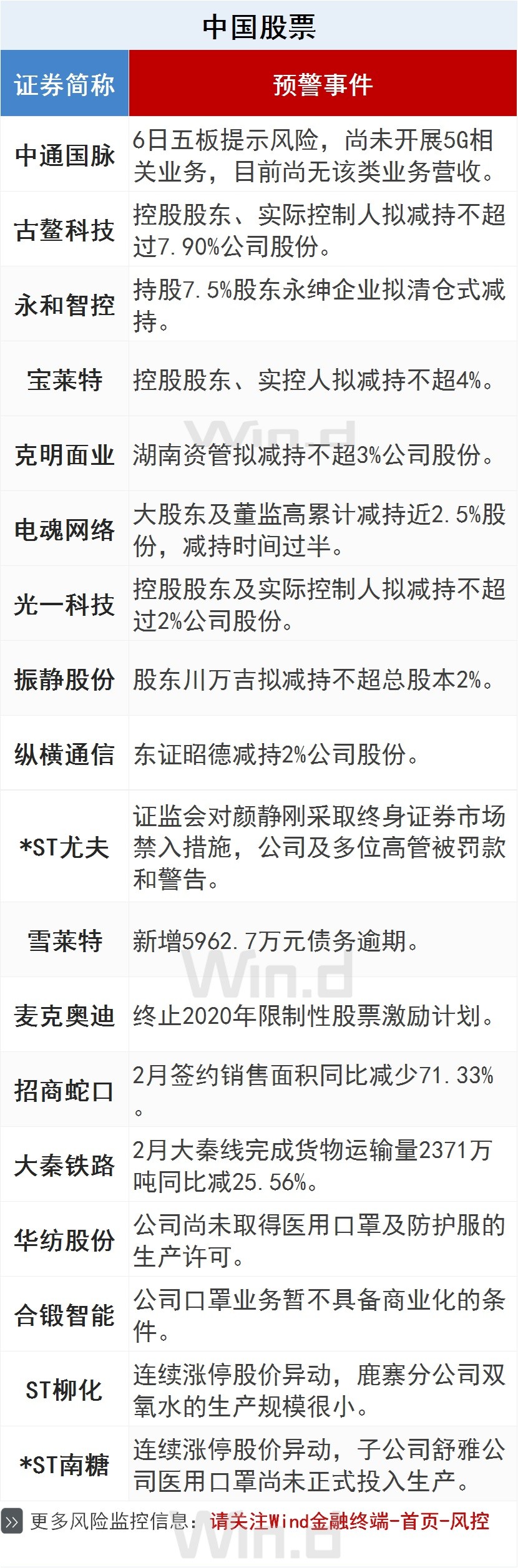 每日投资预警 | 中通国脉、古鳌科技、招商蛇口