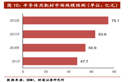数据统计显示,2019年半导体用靶材市场规模约48亿元。因其市场规模与晶圆产量存在直接关系,随着2020年国内晶圆厂的持续扩产,国产化靶材市场预计将进一步增长。