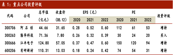 国内上市公司方面,有研新材靶材客户端覆盖中芯国际、北方华创等多家高端客户。江丰电子一直从事高纯溅射靶材的研发生产,是台积电、中芯国际、海力士等客户的主要供应商。隆华科技全资子公司专业从事LCD/AMOLED、半导体制造用高纯溅射靶材。阿石创公司产品应用于平板显示,同时正积极拓展半导体、光伏等行业。