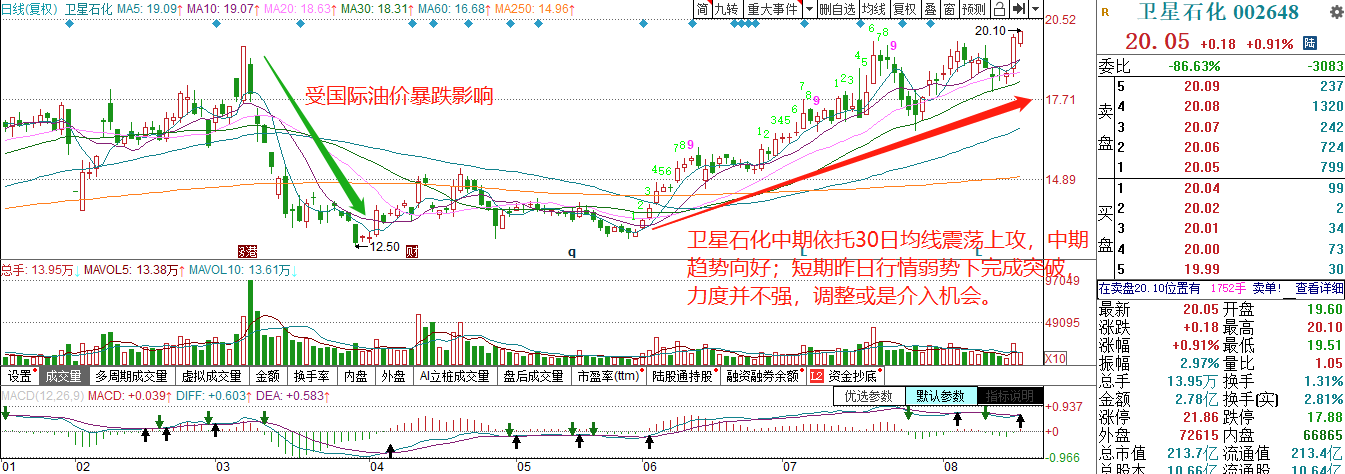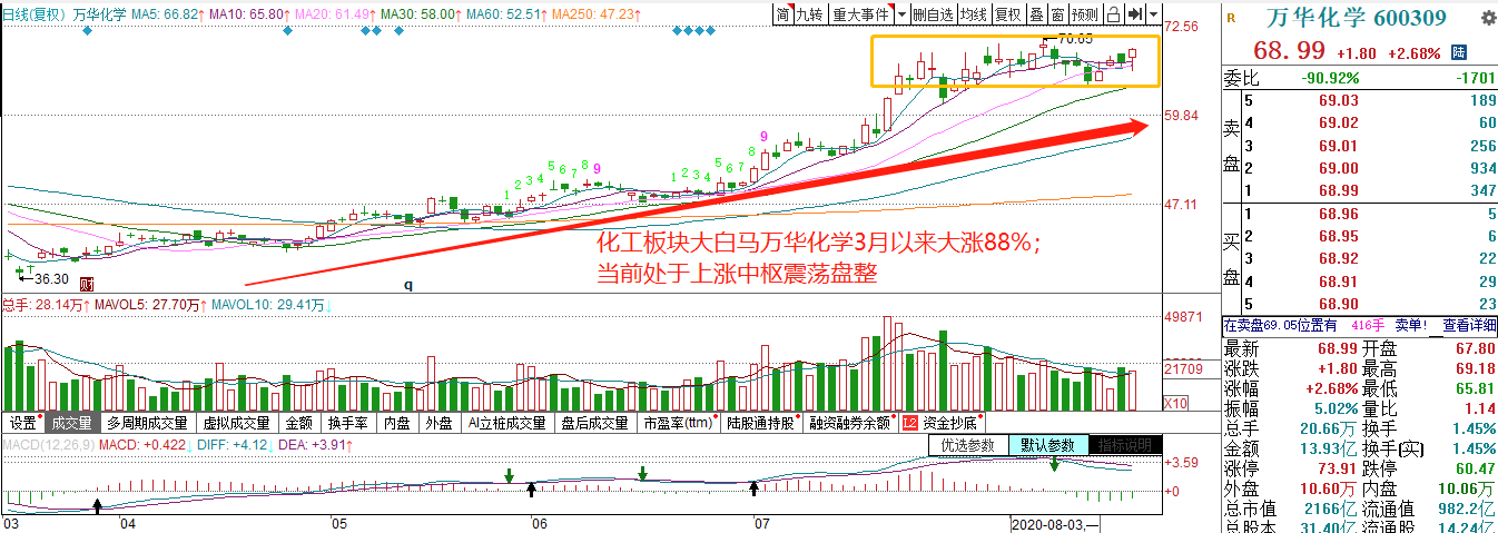 2、从板块看,低估值修复是安全边际较高的择股方式。无论是大金融的上涨,还是此前军工的大幅飙涨,还是昨天我们提到的环保板块,以及今天我们将要浅析的化工板块,都是顺着板块估值处于历史低位,有估值修复预期的逻辑来的。昨天解析的伟明环保也是不负众望,大涨近5%形成了突破走势,也是对我们沿这条逻辑继续挖掘优质板块及个股提供了信心。