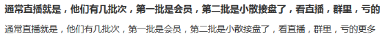 有投资者解释表示:他们有几批次,第一批是会员,第二批是小散接盘,看直播和群里,亏得更多。