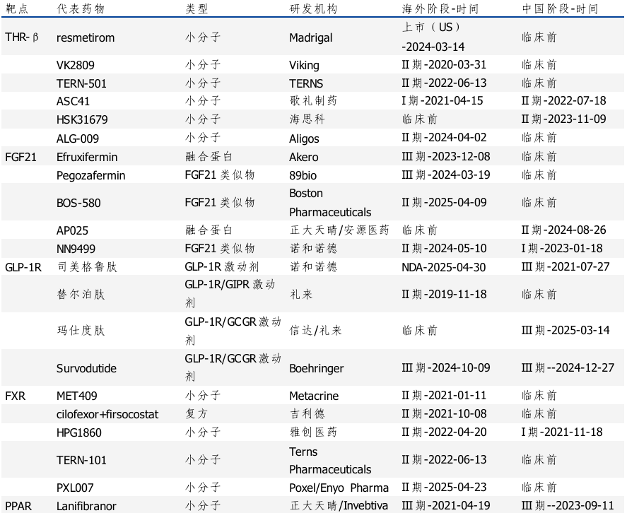 图:全球在研MAFLD/MASH热门靶点及代表管线 |